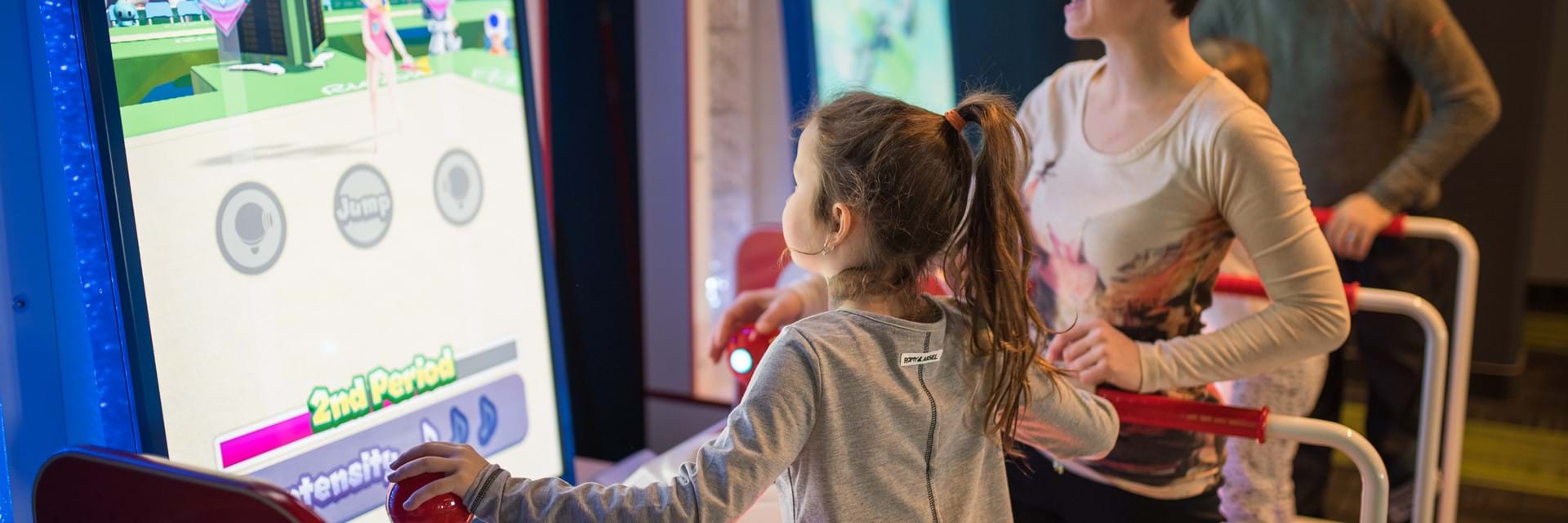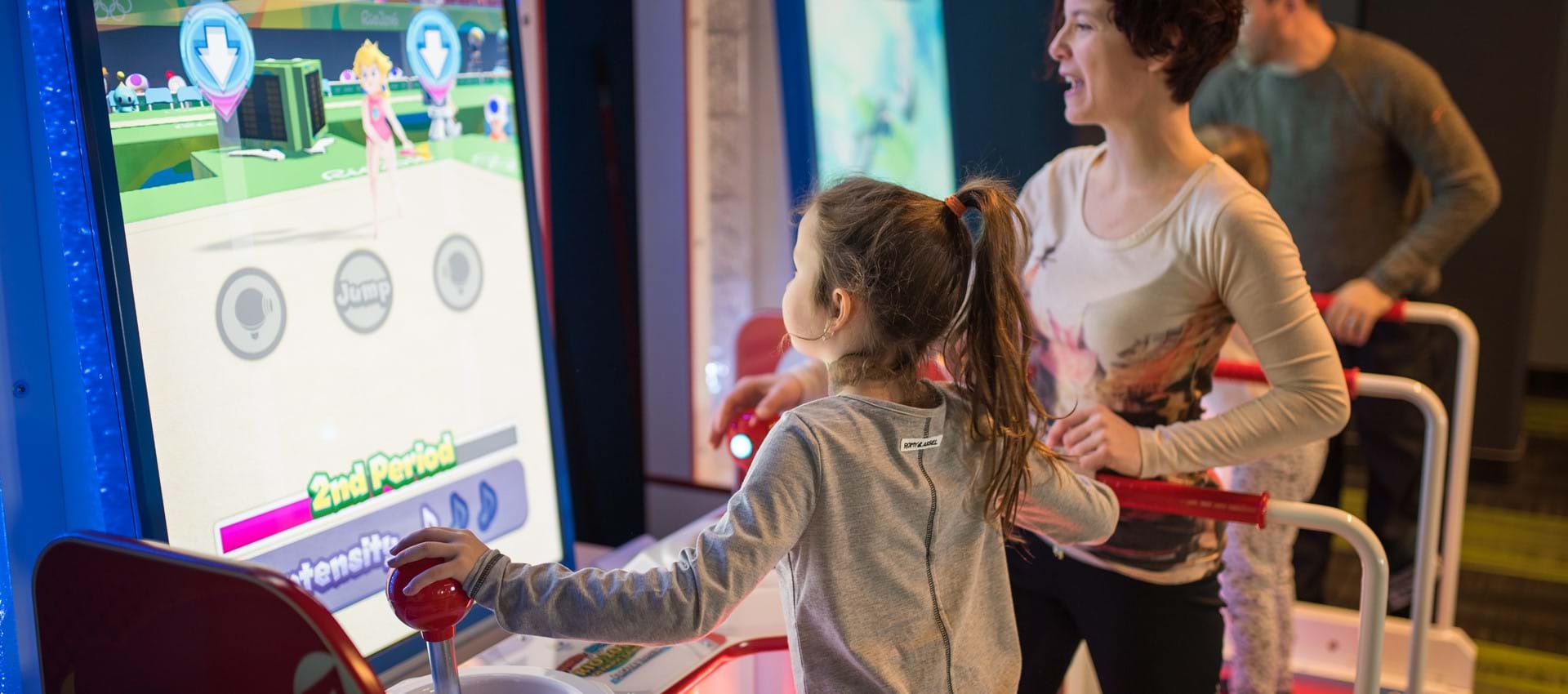 Once you step into the Digital Games Room, you'll never want to leave! There are so many games to play, it boggles the mind: car racing, pinball, basketball, hockey table, a dance floor, skill testing games...the list goes on and on! Located on the 2nd floor of Hôtel Valcartier, our Digital Games Room is open daily for the whole family! Whether you like action or sports games, strategy games or retro games you played when you were a kid, there's something for everyone. Simply pick up a chip card at the entrance to the games room, upload your desired monetary amount to the chip card and start playing!