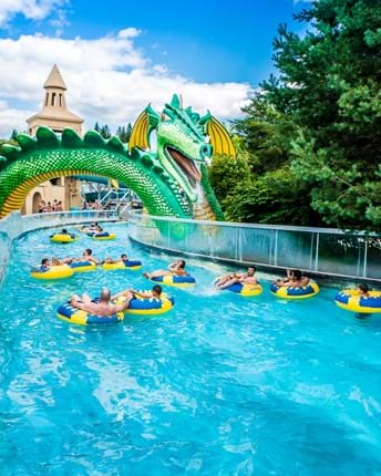 Village Vacances Valcartier's outdoor waterpark dazzles and delights people of all ages summer after summer. With over 35 slides, 100 water games, 2 theme rivers and a gigantic wave pool, you'll dive into adventure and fun all summer long! For your comfort, all pools are heated!