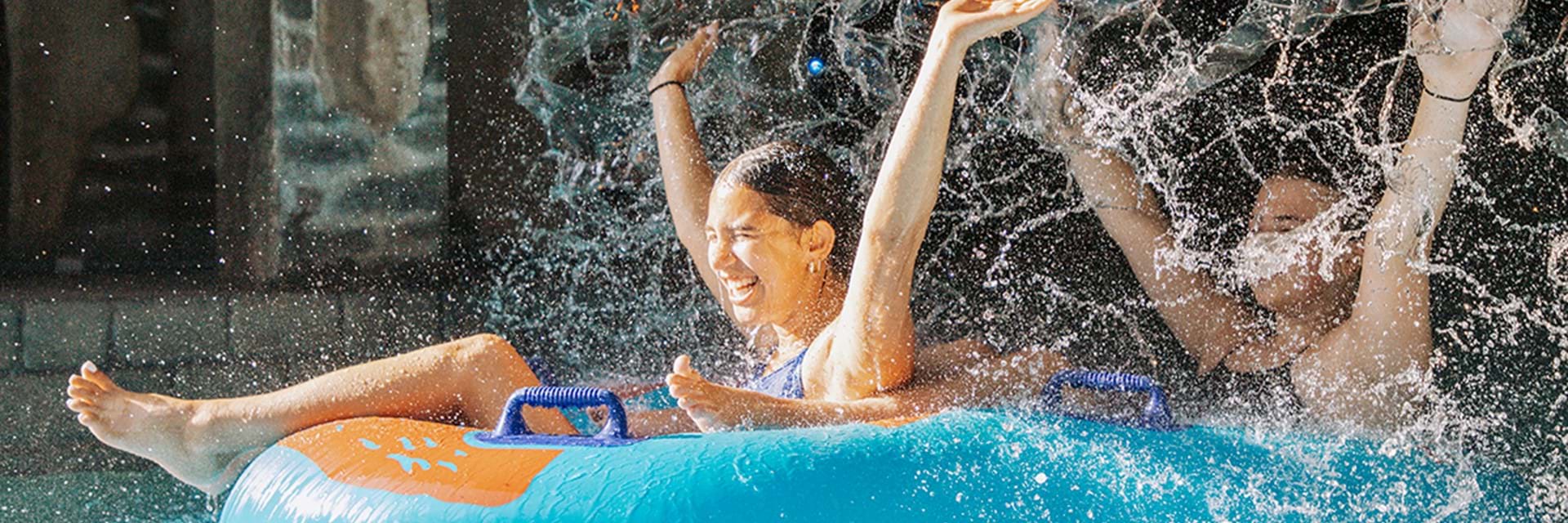Safety rules: Prohibited for children less than 1 m (39 3/8 in.) in height. Children between 1 m (39 3/8 in.) and 1.22 m (48 in.) in height will be admitted as long as they are wearing a personal flotation device and are accompanied by an adult. Glasses with straps permitted. Flotation device not allowed in the Cauldron. Not recommended for pregnant women, people who have claustrophobia or people who have epilepsy.