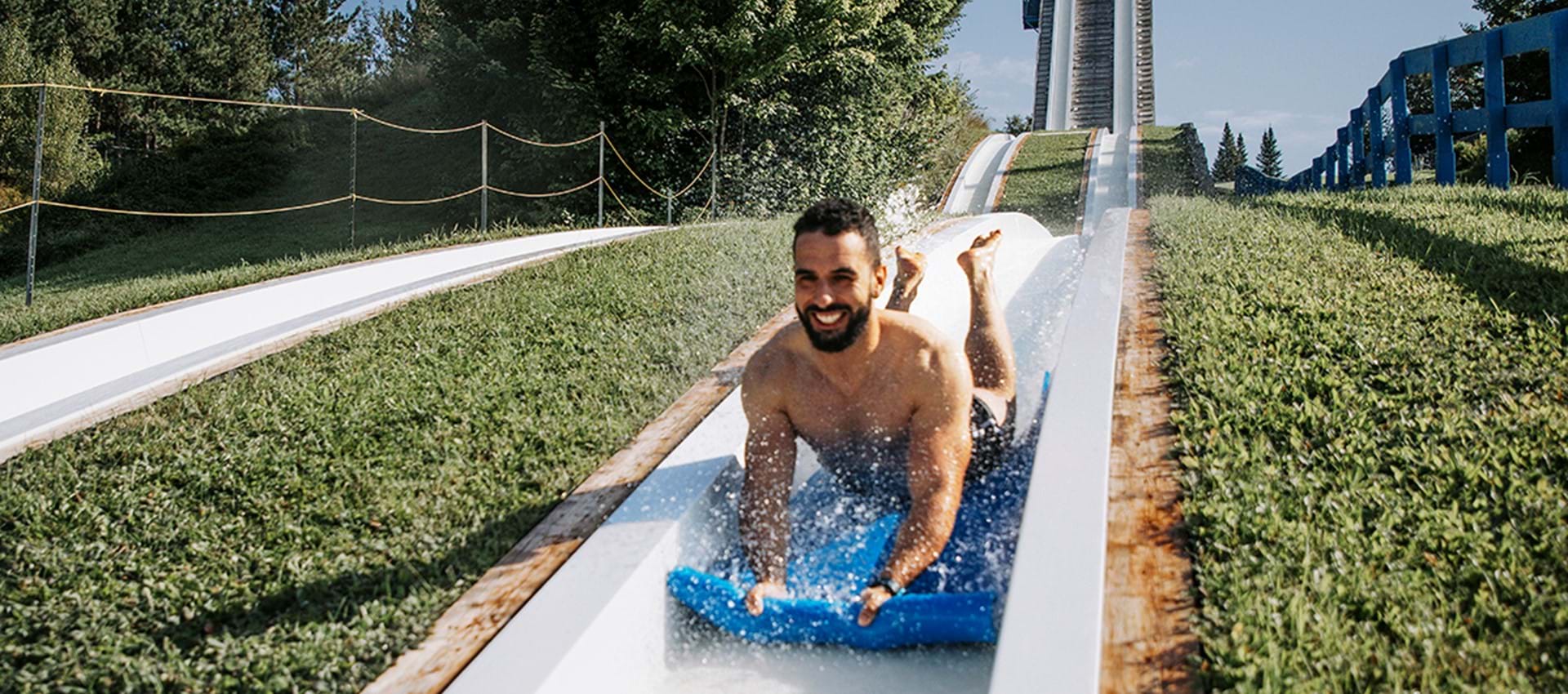 Do you have nerves of steel to take on the highest accelerating slide in North America? Don't be surprised if your heart starts beating a mile a minute! At such a high altitude, you're bound to gasp for air! Take a deep breath, hang on to your tube and zip down the slide head first! Try to reach 80 km/h if you dare! Big thrills guaranteed!
