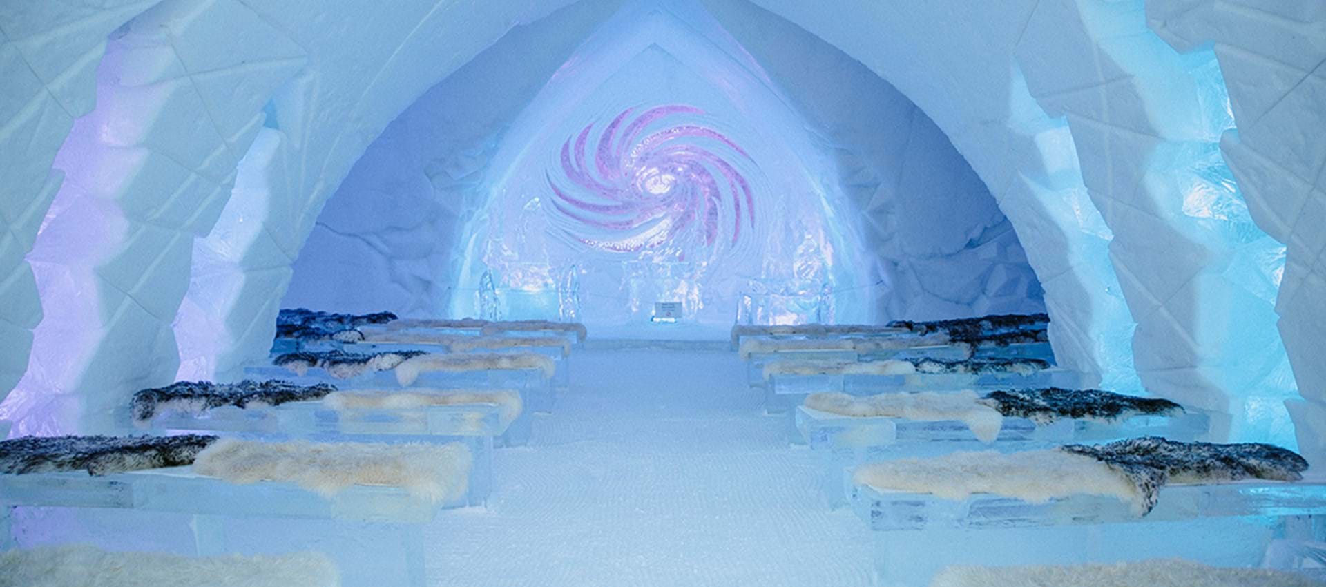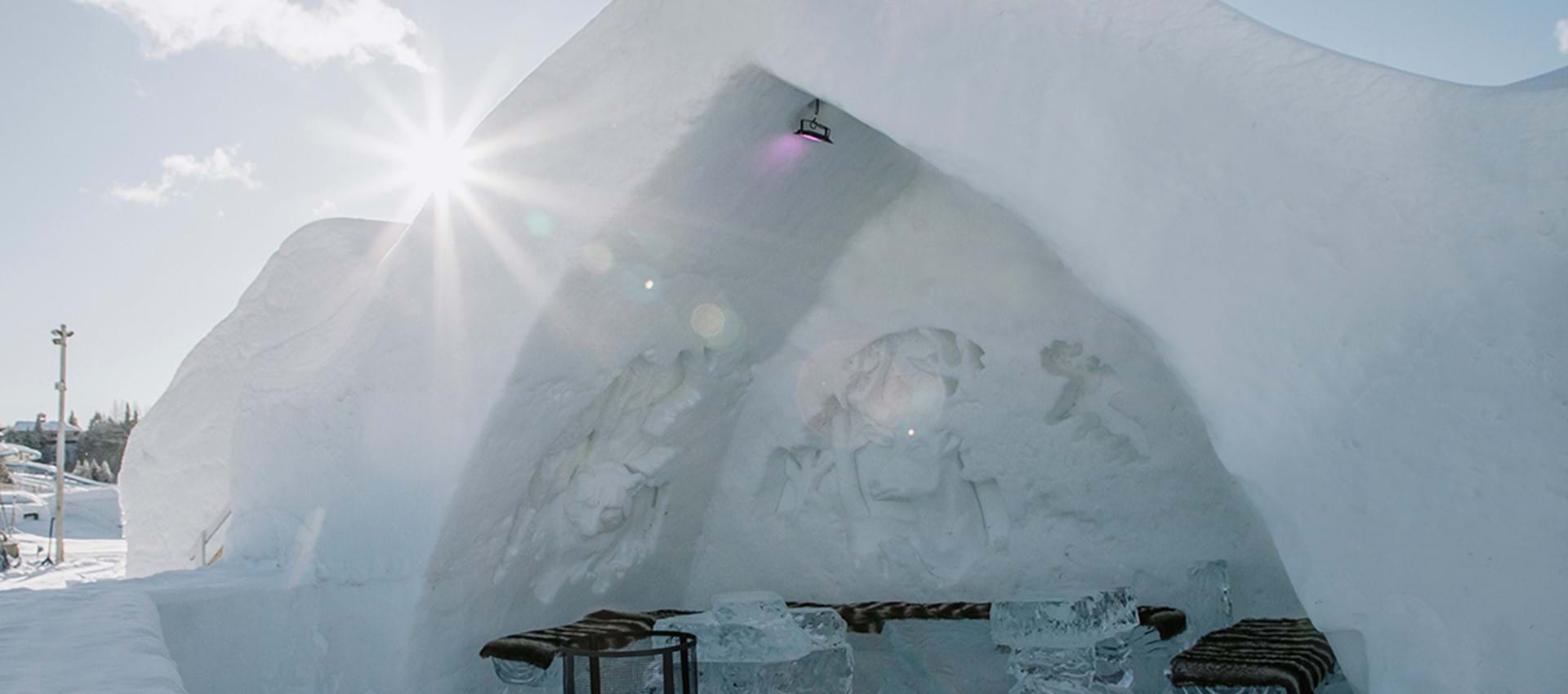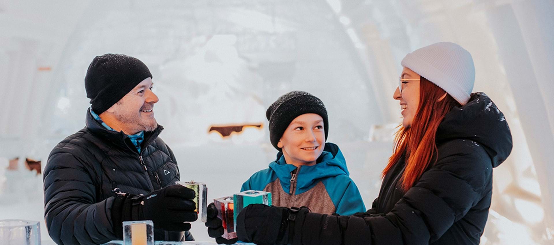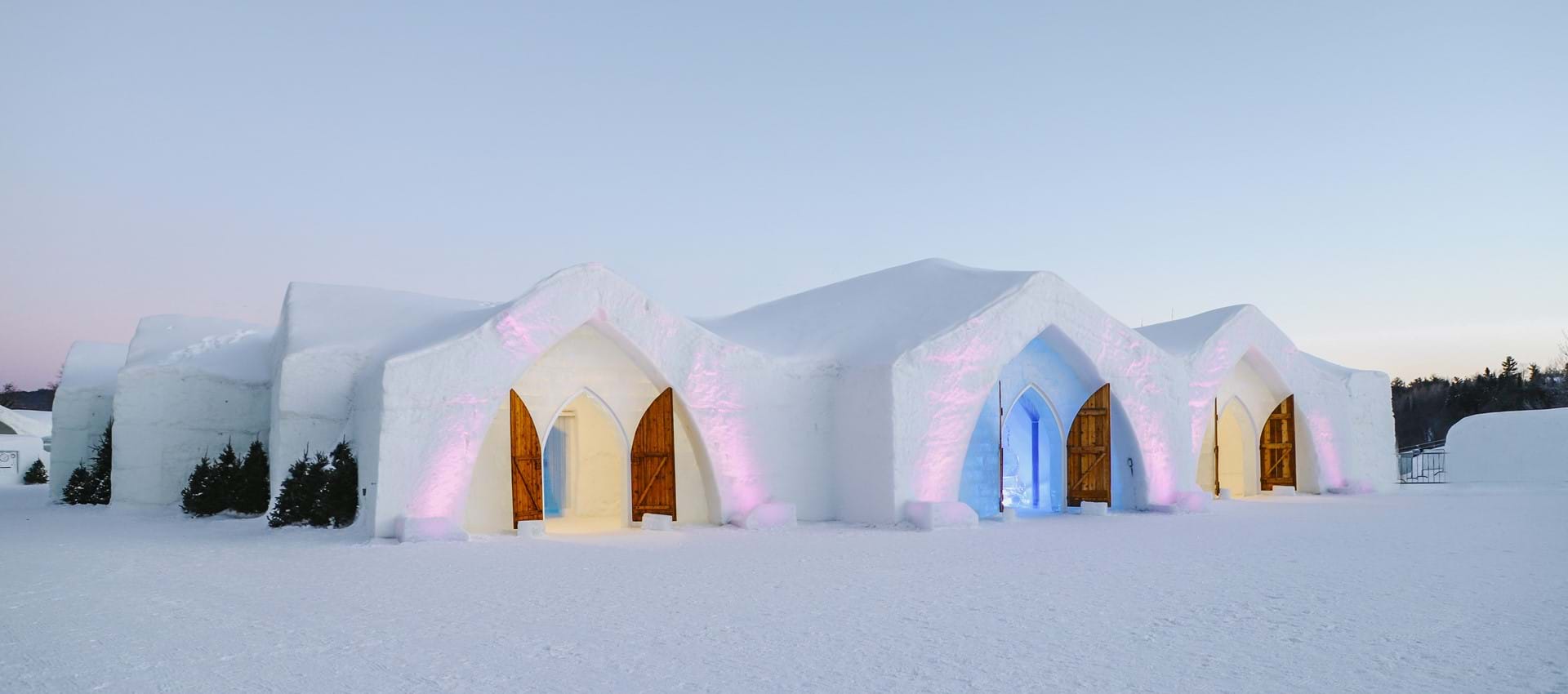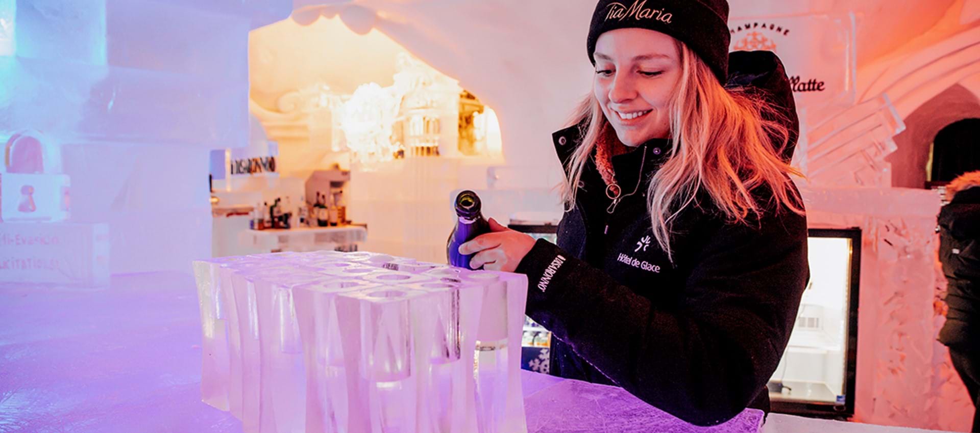 The only one of its kind in North America, the Hôtel de Glace (ice hotel) changes theme each winter to the delight of locals and tourists alike. Fascinating art and winter splendour greet you as soon as you enter the Grand Hall. You'll be awestruck by the hotel's rooms and themed suites which are decorated with majestic sculptures. Make sure to stop by our sumptuous chapel, where people from all over the world come to get married in magical ambiance. To add a touch of warmth to your visit, top it off with a delicious cocktail served in a glass made of ice!