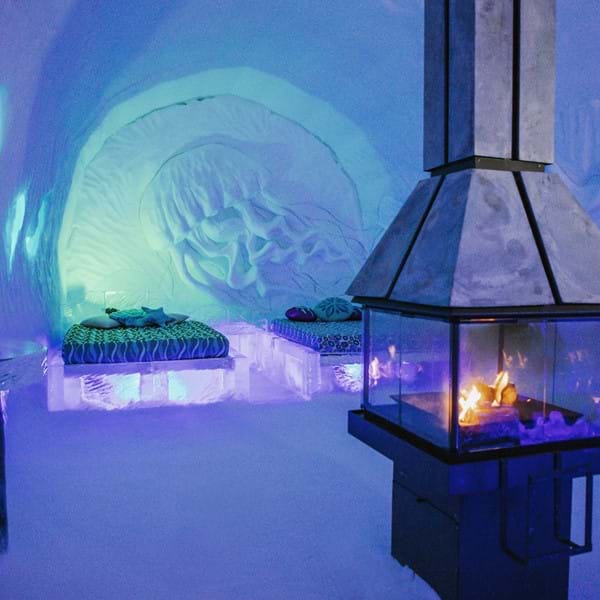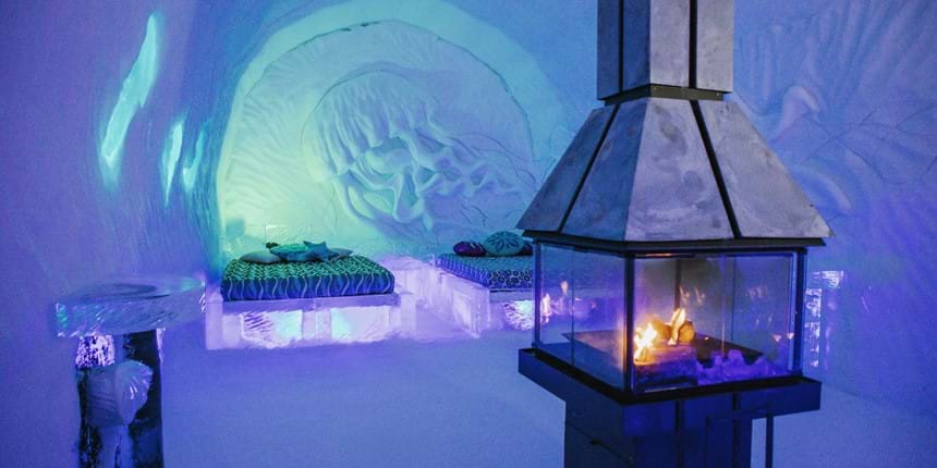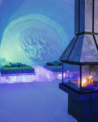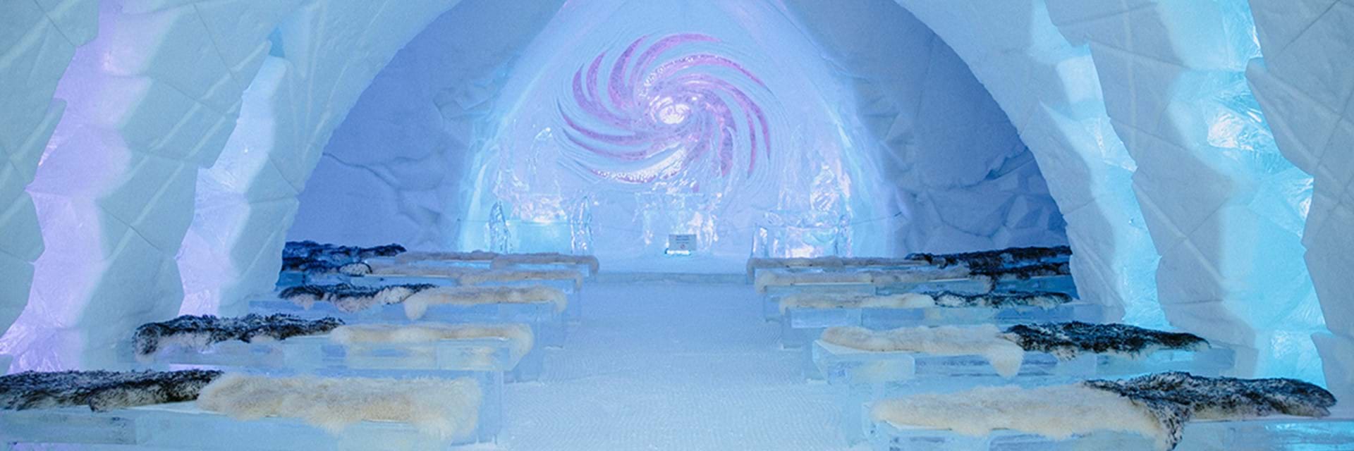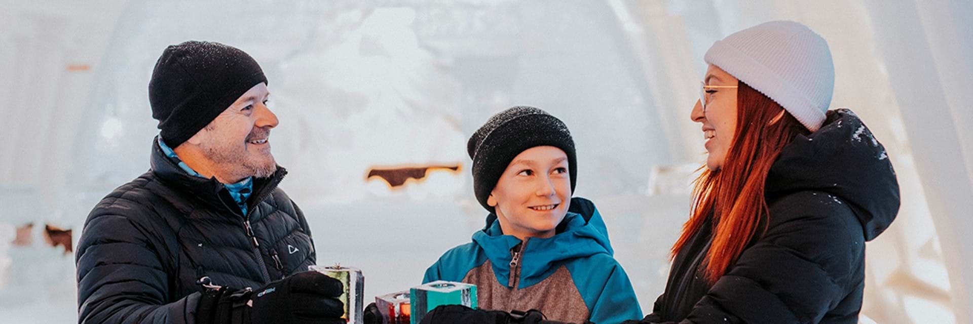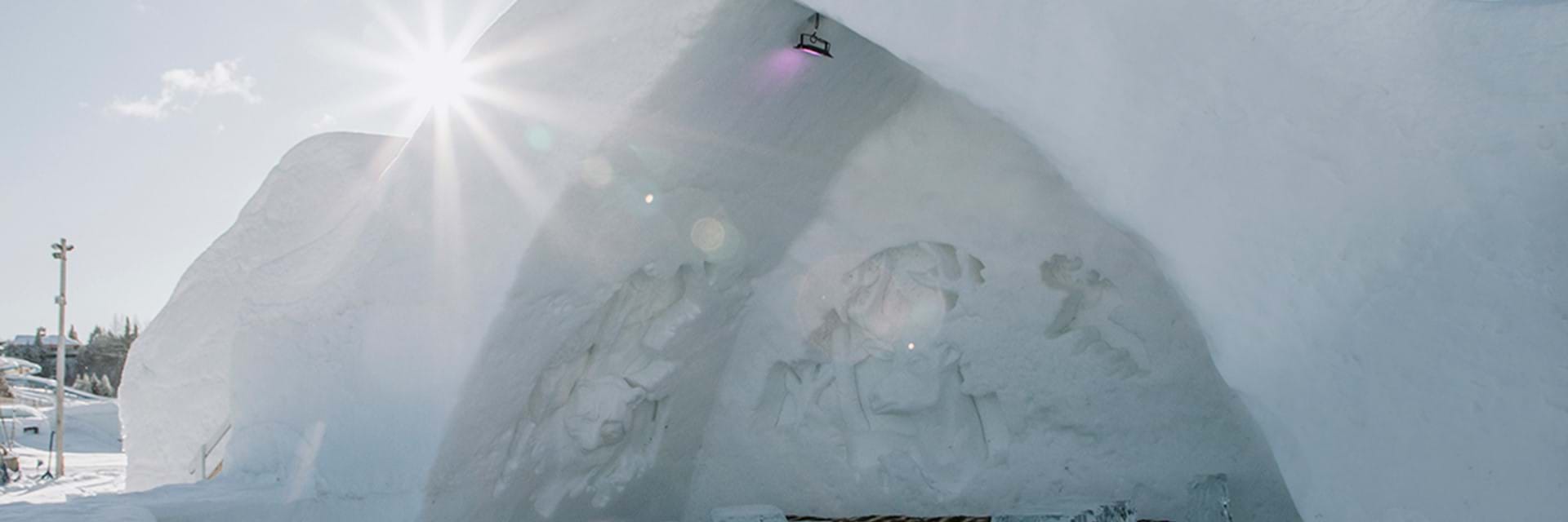The only one of its kind in North America, the Hôtel de Glace (ice hotel) changes theme each winter to the delight of locals and tourists alike. Fascinating art and winter splendour greet you as soon as you enter the Grand Hall. You'll be awestruck by the hotel's rooms and themed suites which are decorated with majestic sculptures. Make sure to stop by our sumptuous chapel, where people from all over the world come to get married in magical ambiance. To add a touch of warmth to your visit, top it off with a delicious cocktail served in a glass made of ice!