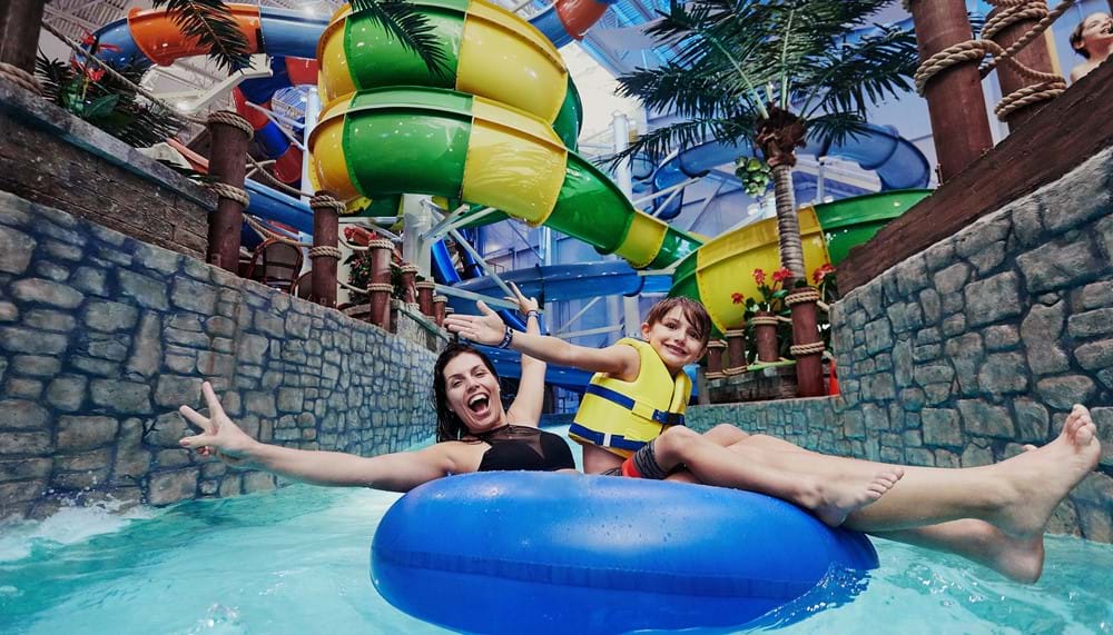 Located at Village Vacances Valcartier, Bora Parc offers over 102,000 square feet of diverse aquatic fun, featuring a large wave pool, more than 14 water slides, a family pool with water games, an adventure river, a double surf wave, and a restaurant terrace. Rain or shine, this one-of-a-kind indoor water park in Quebec promises you a perfectly tropical getaway!