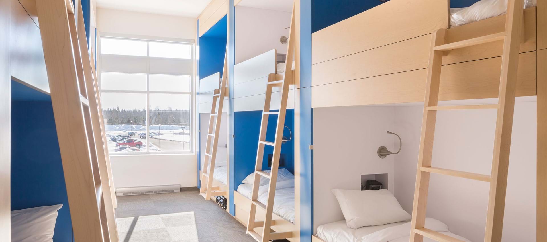 • Dorm room including 12 separate beds located in a private area of the Hotel Valcartier