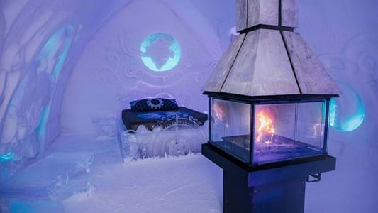 Appréciez la fascinante dualité entre le feu et la glace dans ces suites somptueuses. Spécialement conçus pour l’Hôtel de Glace, les foyers ajoutent une touche de magie et une ambiance unique à votre suite. Ce forfait comprend :